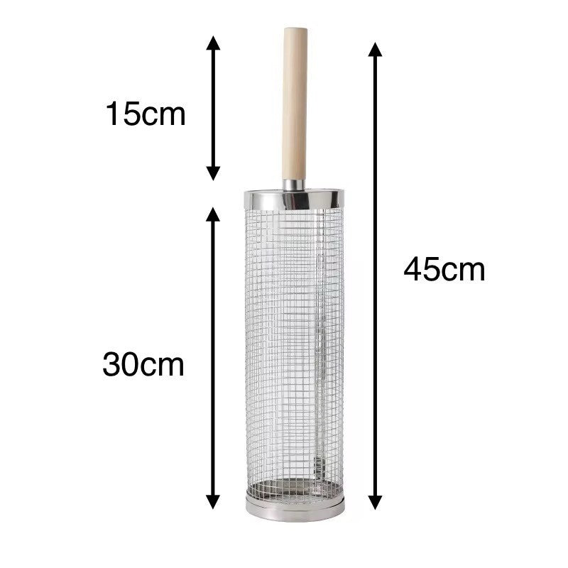 • 2 Stück Edelstahl Grill-Rollkörbe mit Holzgriff