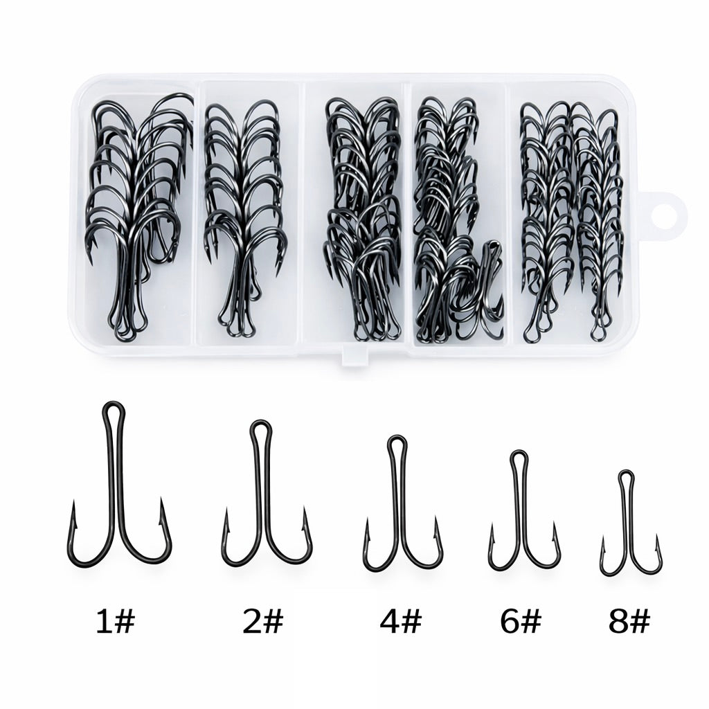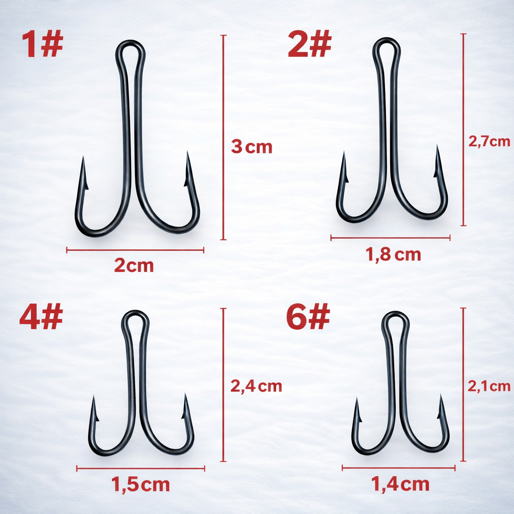 Zwillingshaken Set Box – 50 Angelhaken in 5 Größen
