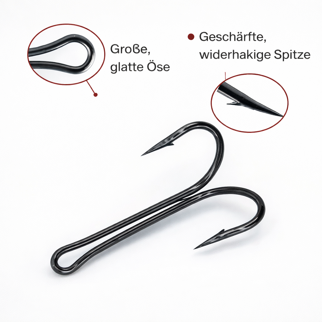Dieses Zwillingshaken-Set bietet dir eine vielseitige Auswahl an 50 robusten Angelhaken in einer praktischen Kunststoffbox. Ideal für Angler, die für verschiedene Ködergrößen und Zielfische flexibel ausgestattet sein möchten.