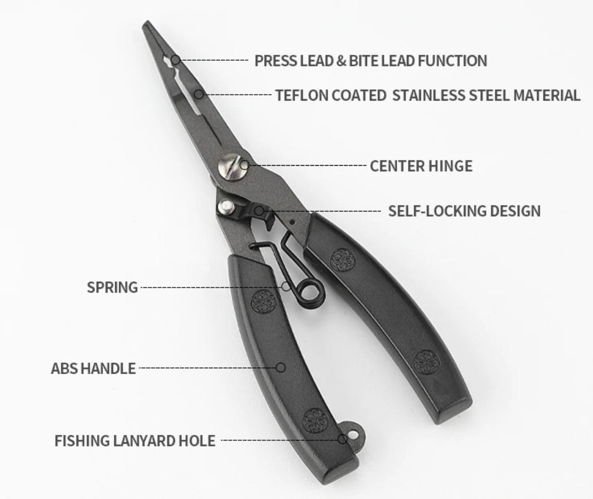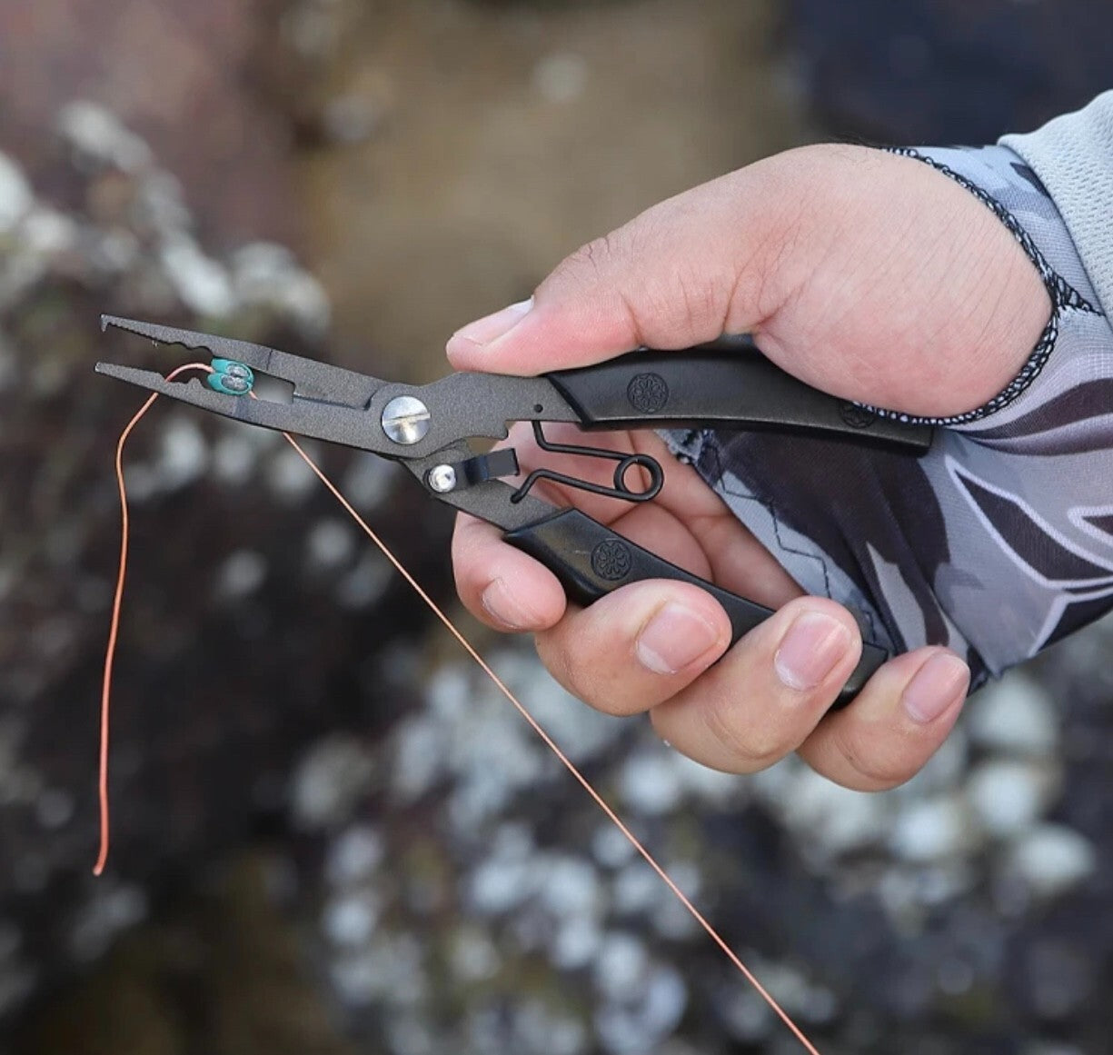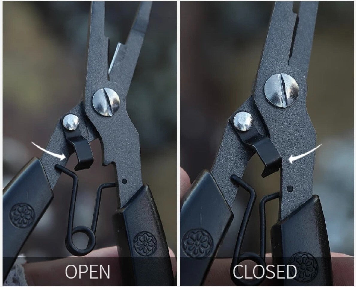 Sie vereint mehrere Funktionen in einem robusten Werkzeug und eignet sich ideal zum Hakenlösen, Klemmen, Schneiden und Ringöffnen – egal ob am Wasser oder unterwegs.