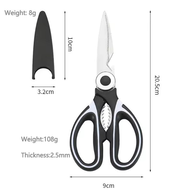 Diese Multifunktions-Küchenschere ist der perfekte Helfer in jeder Küche. Ob zum Schneiden von Fleisch, Geflügel, Fisch, Gemüse oder zum Öffnen von Verpackungen – mit dieser Schere hast du ein echtes Allround-Werkzeug zur Hand.