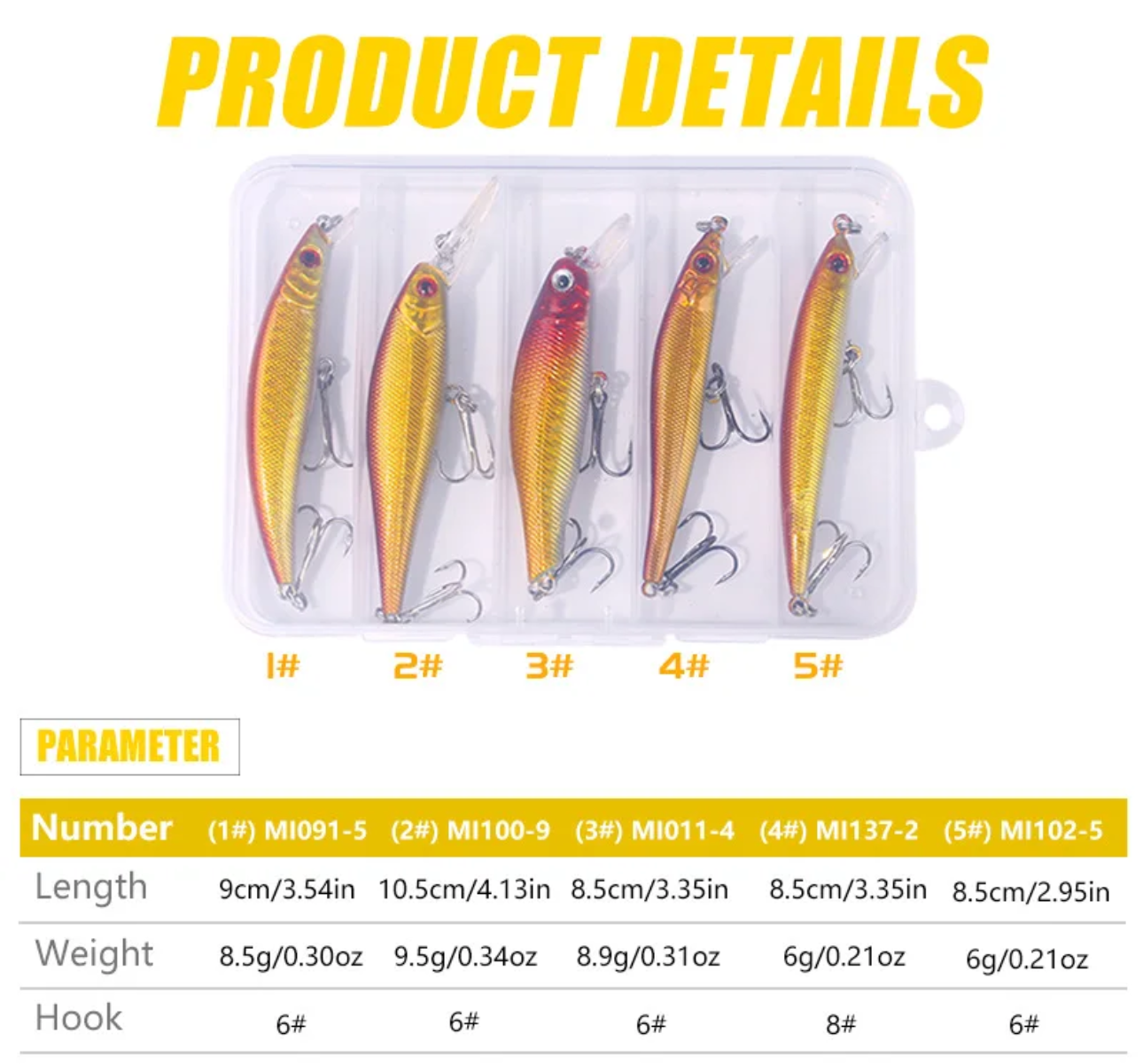 Dieses Wobbler-Set kombiniert unterschiedliche Köderformen und Laufverhalten in einer praktischen Box. Die schwimmenden Hardbaits decken verschiedene Tiefenbereiche ab und erzeugen abwechslungsreiche Bewegungen unter Wasser – ideal für das gezielte Spinnfischen.