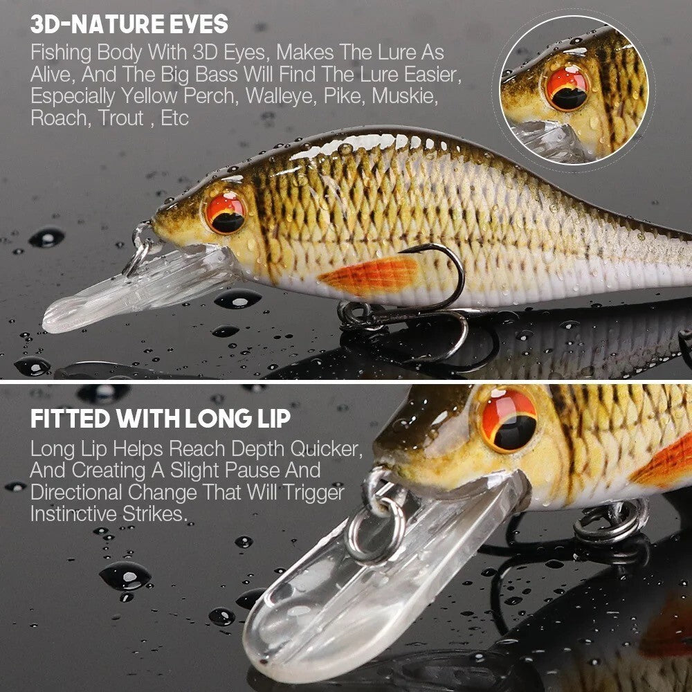 Die Köder tauchen schnell ab, laufen stabil und erzeugen durch die integrierte Rasselkugel zusätzliche Reize unter Wasser.